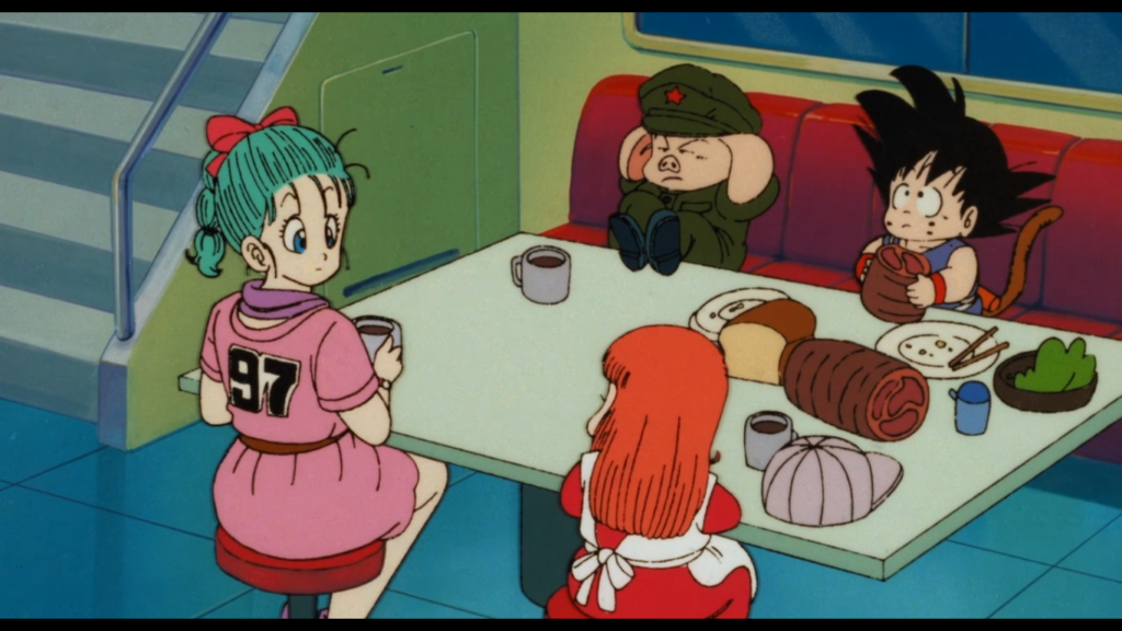 物語的には本編とのリンクはなく、ドラゴンボールの設定を借りたオリジナルストーリーとなっています。オリジナルストーリーというか、再編集みたいなプロモーション的な印象を受けました。上映時間の50分の中にドラゴンボールの初期の名場面がぎゅっと凝縮されています。50分の中で悟空とブルマが出会い、ヤムチャ、プーアル、ウーロン、亀仙人からシェンロンの登場まで、初期のドラゴンボールの名場面が目白押しです。なんかまるでドラゴンボール知らない人に対する販促的な思惑が感じ取れました(笑)