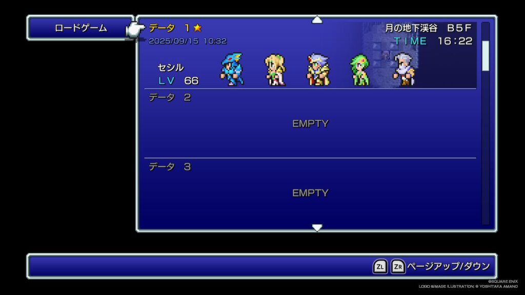 プレイ時間は、16:22と最近のゲームと比べてサクサクとクリアできるゲームとなっております。ピクセルリマスターは難易度調整や移動速度や戦闘速度の高速化がなされているので、ストレスなくプレイできると思います。途中つまずくようなボスもいなかったですねー。難易度はもう少し高くてもよかったんじゃないかなーとも思っております。