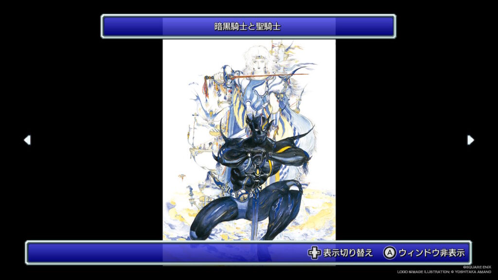 上記のイラストギャラリーとサウンドギャラリーはゲーム開始直後から全て解放されております。イラストギャラリーはピクセルリマスター以外の、発売当初から現在までのファイナルファンタジーⅣに関するイラストを閲覧することが出来ます。