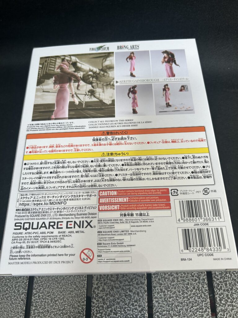 とはいえFF7においては物語のキーパーソンで外すことは出来ないキャラクターですし、フィギュアを並べた時にどうしても必要なキャラクターです。ブリングアーツシリーズはFF7のプレイアブルキャラクターや主要キャラをほぼフィギュア化してくれているので、本当に嬉しく思います。定価が少し高いですが。でも、そのうち定価で買うのは難しくなって高騰すると思うので、気になった方は是非手にとってみてください。